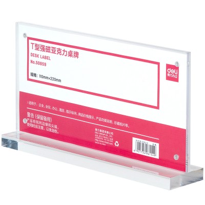 得力(deli)50859T型强磁亚克力桌牌 台卡 单面透明 110*220mm