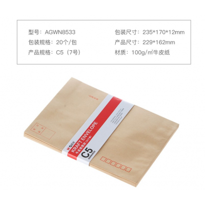 首页 > 办公用品 > 文具 > 晨光 AGWN8533 C5牛皮纸信封 20个/包