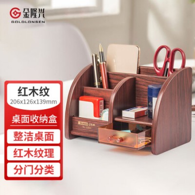 金隆兴C2022多功能木质笔筒大容量收纳盒 红木纹