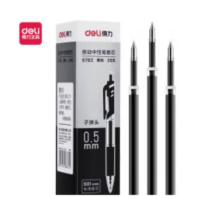 得力S782按动中性笔替芯0.5mm子弹头(黑)(单位:盒)
