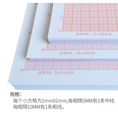 天顺 坐标纸计算纸 绘图纸对数红色格子加厚座标纸毫米格子标准款 A 3/8开(25*35厘米)加厚100张