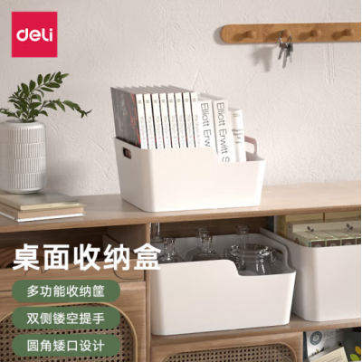 得力(deli)PK107桌面收纳盒 收纳筐收纳篮 白色小号
