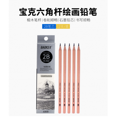 宝克(BAOKE)PL1642 办公绘图铅笔 学生考试铅笔 多灰度 2B 12支