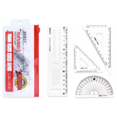 宝克(BAOKE)RU2071学生考试绘图测量套尺15cm多功能答题尺+三角尺*2+量角器 4件组合装尺子套装 4件/套装