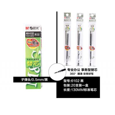 晨光(M&G) MG6102 文具0.5mm 黑色子弹头中性笔芯 签字笔替芯 水笔芯(Q7/6600适用) 20支/盒 1盒装