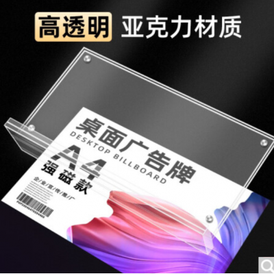 宜甜 (5个装)亚克力桌牌座位牌展示牌台卡t型桌牌强磁立牌台签价格牌磁吸广告牌签到指引会议桌牌 T型高清加厚横款200mm*100mm