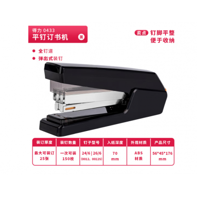 得力(deli)0433 平钉省力型订书机 单指按压平钉包角 黑色