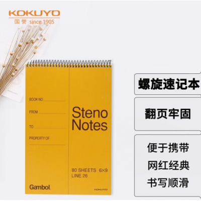 国誉(KOKUYO)WCN-S6090螺旋笔记本子Gambol渡边竖翻本线圈上翻本速记本6x9寸 8mm中央分栏线 80张/本 1本