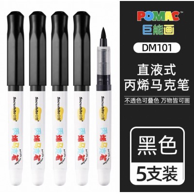 白雪POMAC巨能画直液式软头马克笔 丙烯马克笔 DM101黑色5支装(袋)