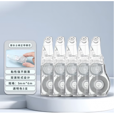 普乐士PLUS MR修正带36M涂改带替芯 全透明色5个替芯
