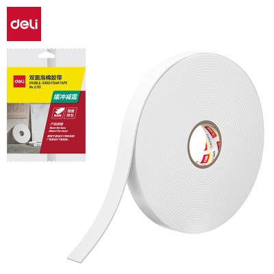 得力(deli)强力高粘EVA泡棉双面胶带 泡沫双面胶 墙面免钉 18mm*10y*2mm 办公用品 白色小卷芯1卷 JL112