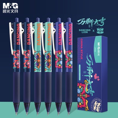晨光(M&G)文具0.5mm黑色按动中性笔 子弹头签字笔 万狮大吉系列高颜值作业刷题学生水笔 6支/盒AGPJ71X211