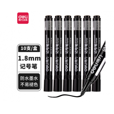 得力(deli)SK109单头细杆1.8mm记号笔 油性笔 黑色10支/盒装