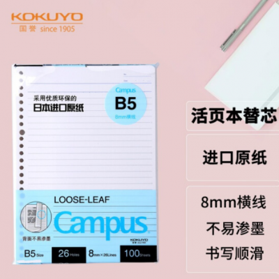 国誉(KOKUYO)WCN-CLL1110 B5活页纸Campus活页本替芯笔记本子活页纸内页 8mm横线26行 100张1本装