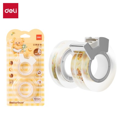 首页 > 办公用品 > 文具 > 得力(deli)黄油小熊水晶超透文具胶带 12mm*20y*38μm 2卷/卡 HY552