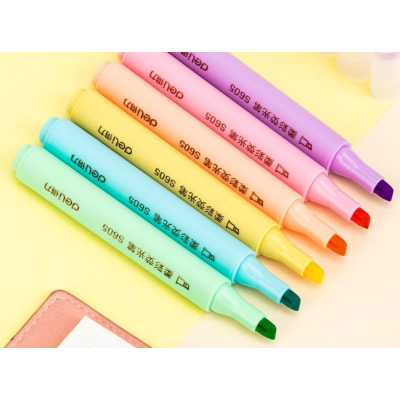 得力(deli)S605柔采三角杆荧光笔(混)(盒)
