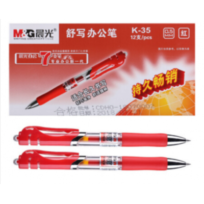 晨光(M&G)K35红色0.5mm中性笔按动签字笔12支/盒