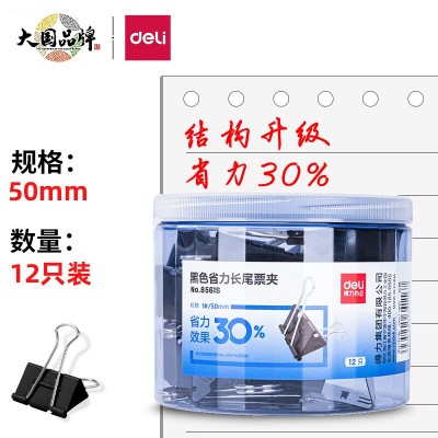 得力(deli)12只50mm省力黑色长尾夹票夹 1# 大号8561S